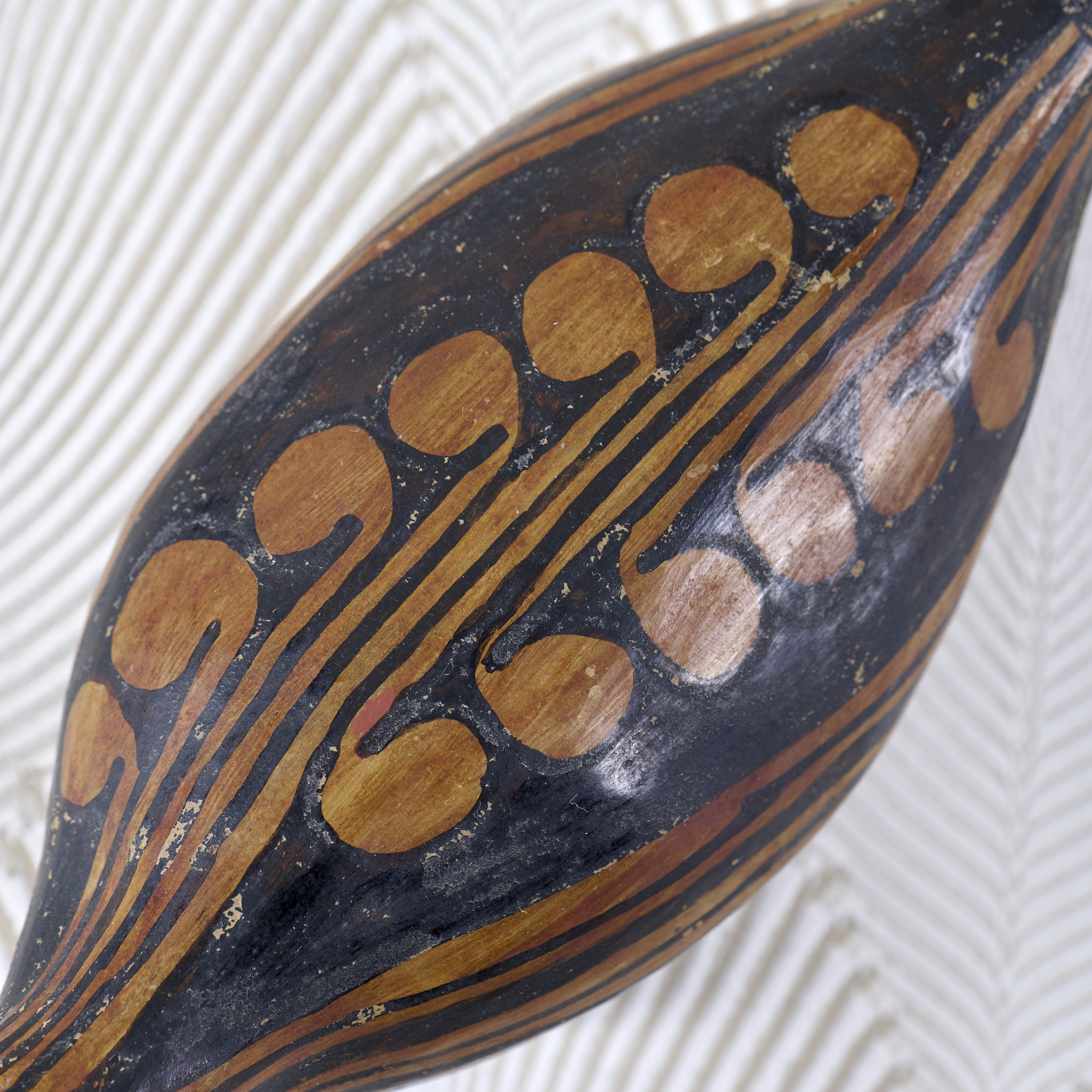 ジュルーナ族が制作した、アリクイの素焼き(野焼き)の珍しいオブジェ。ジュルーナ族の文化において、ヒョウは勇敢の象徴で彼らの先祖としても大変崇拝されている特別な存在。ジュルーナ族が描くすべての模様はヒョウを表している。